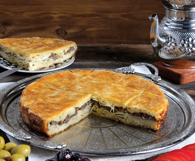 Kıymalı Börek : El açması kat kat baklava hamuru içinde; özenle seçilmiş yağsız kıyma harcı ve Urfa’dan saf tereyağ ile hazırlanır.